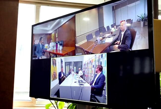 在浙江哈尔斯真空器皿股份有限公司,记者看到了一场跨越7500多公里的董事会,瑞士希格公司CEO赫兹向哈尔斯分析汇报今年以来希格公司的经营情况和下一个年度业务经营计划。